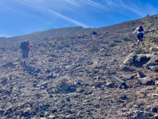 8 km ist nicht viel an Streckenlänge. Man sollte hier aber bedenken das man im Grunde keine feste Wege hat. Es gibt hier keinen offiziellen Wanderweg. Es ist stellenweise sehr steil und man hat oft Passagen mit Geröll. Dementsprechend ist eine gute Ausrüstung selbstverständlich. Schatten gibt es nirgendwo bei dieser Tour, eine Kopfbedeckung und hinreichend zu trinken sollte man dabei haben.