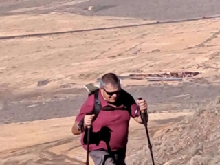 Wir sind nun wieder am Fuße des Cerro del Aceitunal und laufen zunächst auf extrem weichen rötlichen Boden aber fast parallel zur FV-10 wieder in Richtung La Matilla. Vor uns zeigt sich eine Piste der wir dann weiter folgen. Nach ein paar Kilometern haben wir das Gemeindezentrum mit der Kirche in Sichtweite. Am Walker Mobil angekommen sind wir froh das wir diese 8 km Runde gut geschafft haben und sind alle immer noch beeindruckt von diesen fantastischen Aussichten oben auf dem Berg.