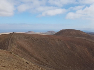 In diesem Beitrag möchten wir euch ein paar Eindrücke von einer Wanderung über die Vulkankette zwischen Corralejo und Lajares vermitteln. Hier reihen sich vom Calderón Hondo (278 Meter) bei Lajares bis zum Bayuyo (269 Meter) bei Corralejo ein Vulkan an den Nächsten. Noch zu erwähnen wären der Montaña Colorada (244 Meter) und der Las Calderas (245 Meter). Es empfiehlt sich jeweils am Start und Ziel ein Fahrzeug zu deponieren. Die Wanderung ist in beide Richtungen möglich, wir sind dieses Mal von Corralejo gestartet.