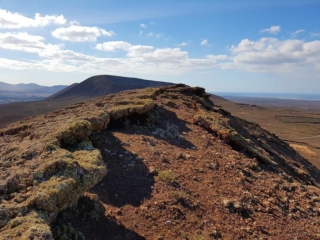 Bereits vom Gipfel des Bayuyo öffnet sich ein unglaublicher Blick über den Inselnorden! Die Dünen, Corralejo, Lanzarote und die kleine Insel Lobos liegen uns zu Füßen! Auch der Vulkan Montaña Roja ist gut zu sehen.