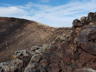 Und irgendwann taucht er dann in voller Pracht vor uns auf, der Calderón Hondo (278 Meter) ist der am besten erhaltene Vulkan auf Fuerteventura! Ein gut ausgebauter Weg führt zu einer Aussichtsplattform von der man gut in den Krater schauen kann.
