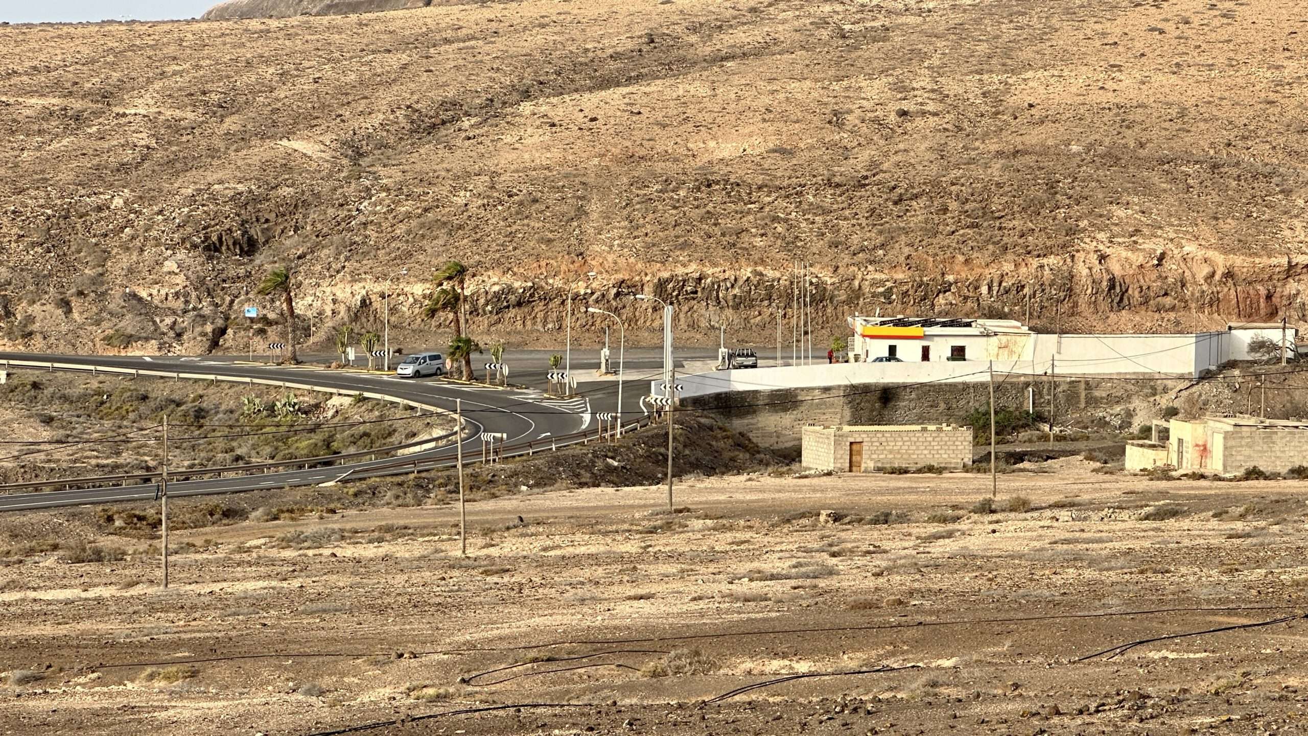 Der Morgen begann mit einem Hauch von Meeresluft und dem sanften Wispern der Wellen an der Costa Calma. Im Walkers Mobil rollten wir hinaus in den jungen Tag, während das goldene Licht der Sonne über die Hügel glitt und den Himmel in Pastelltöne tauchte. Unser Ziel lag unscheinbar und doch verheißungsvoll: eine kleine Siedlung, verborgen nahe der ehrwürdigen Shell-Tankstelle, deren verblasstes Gelb und Rot wie ein Gruß aus einer anderen Zeit wirkte.