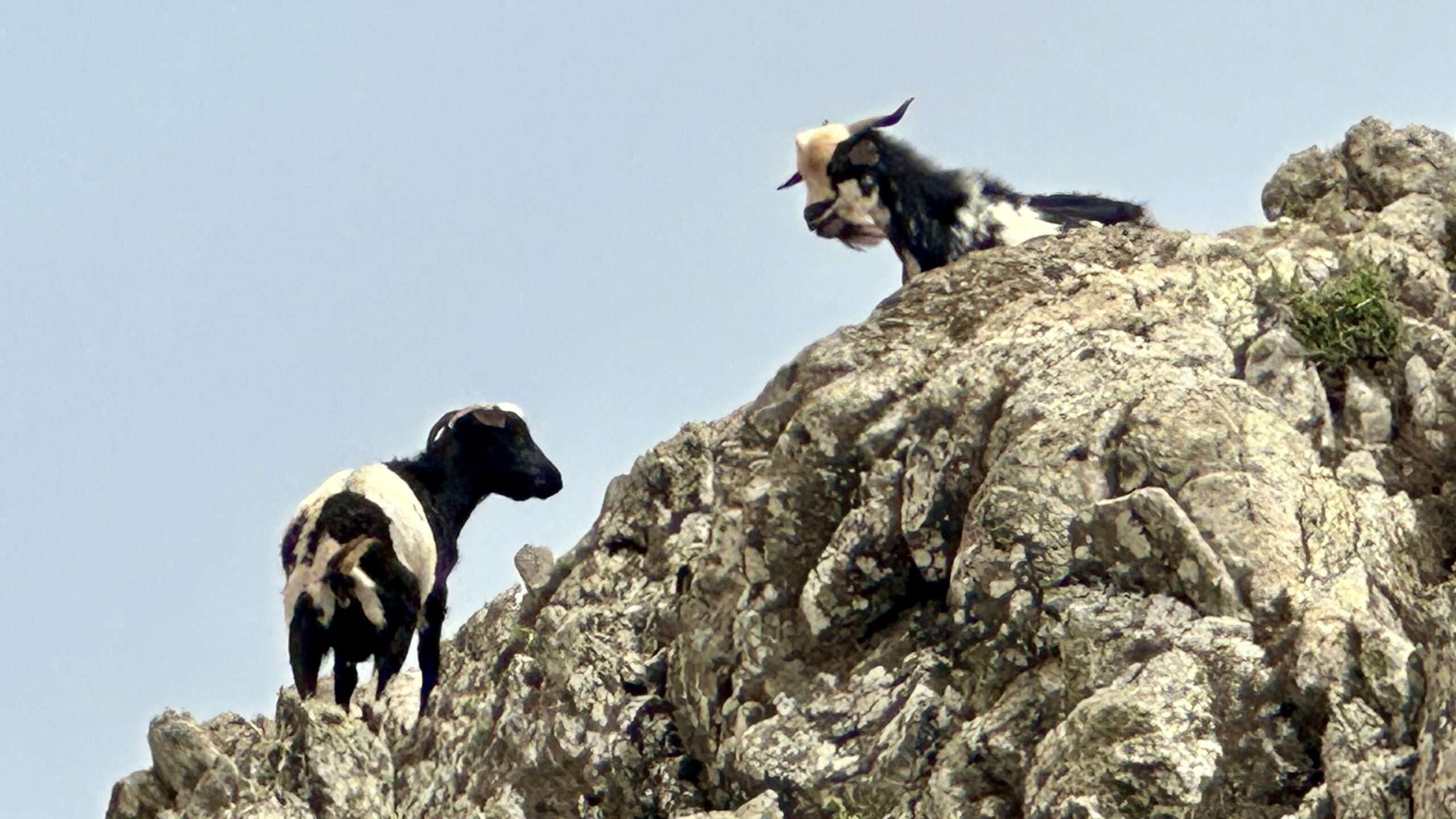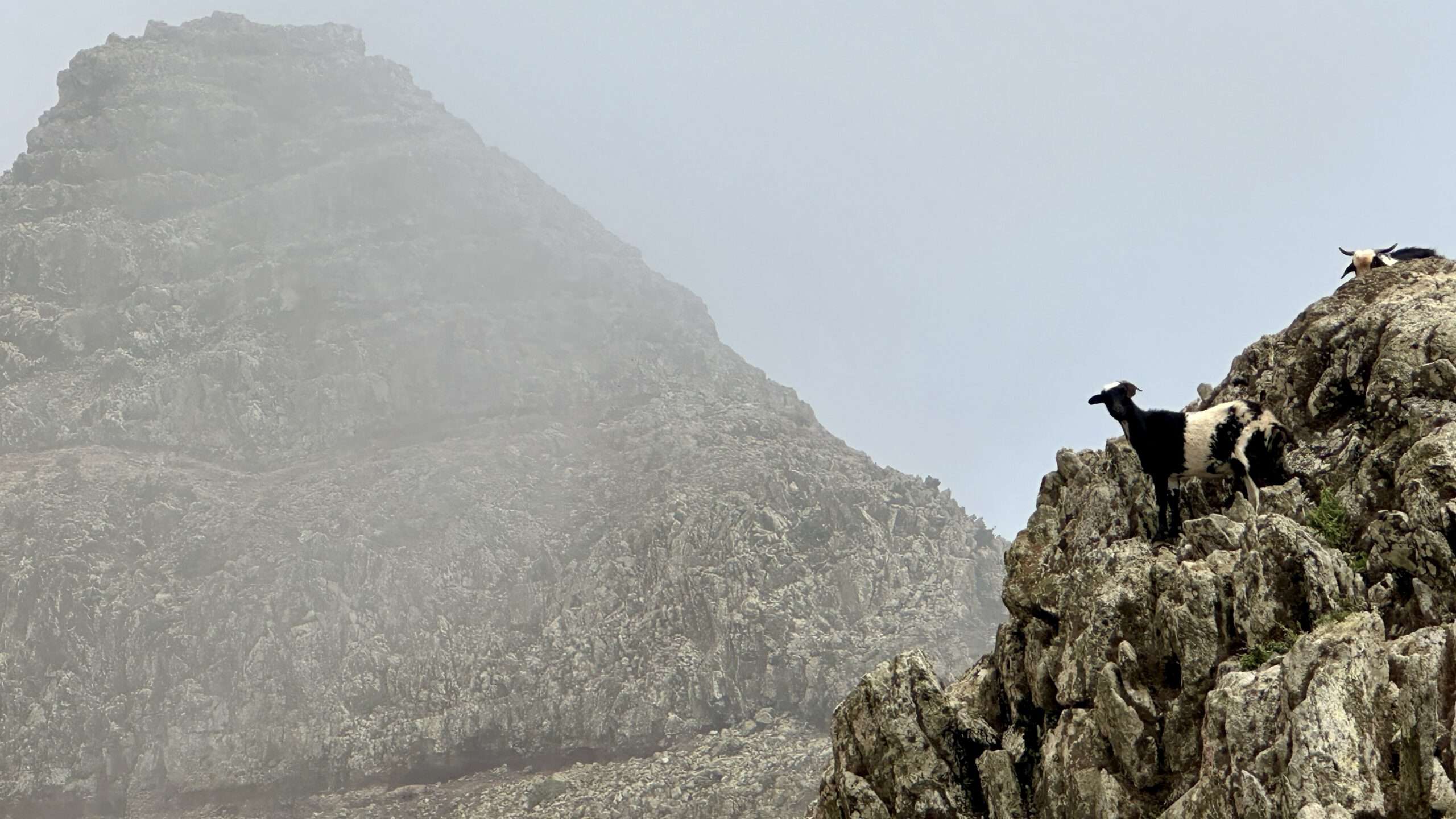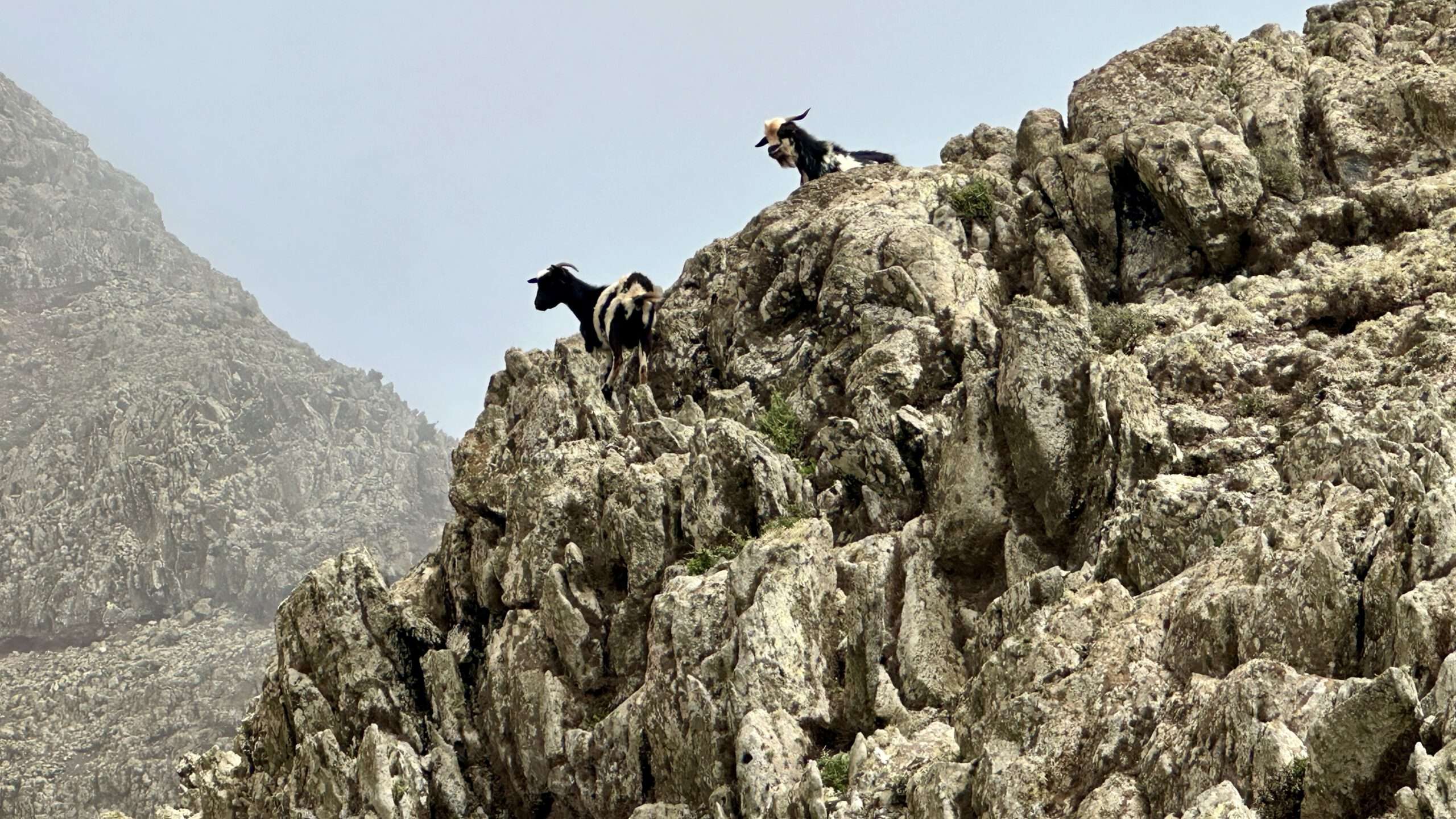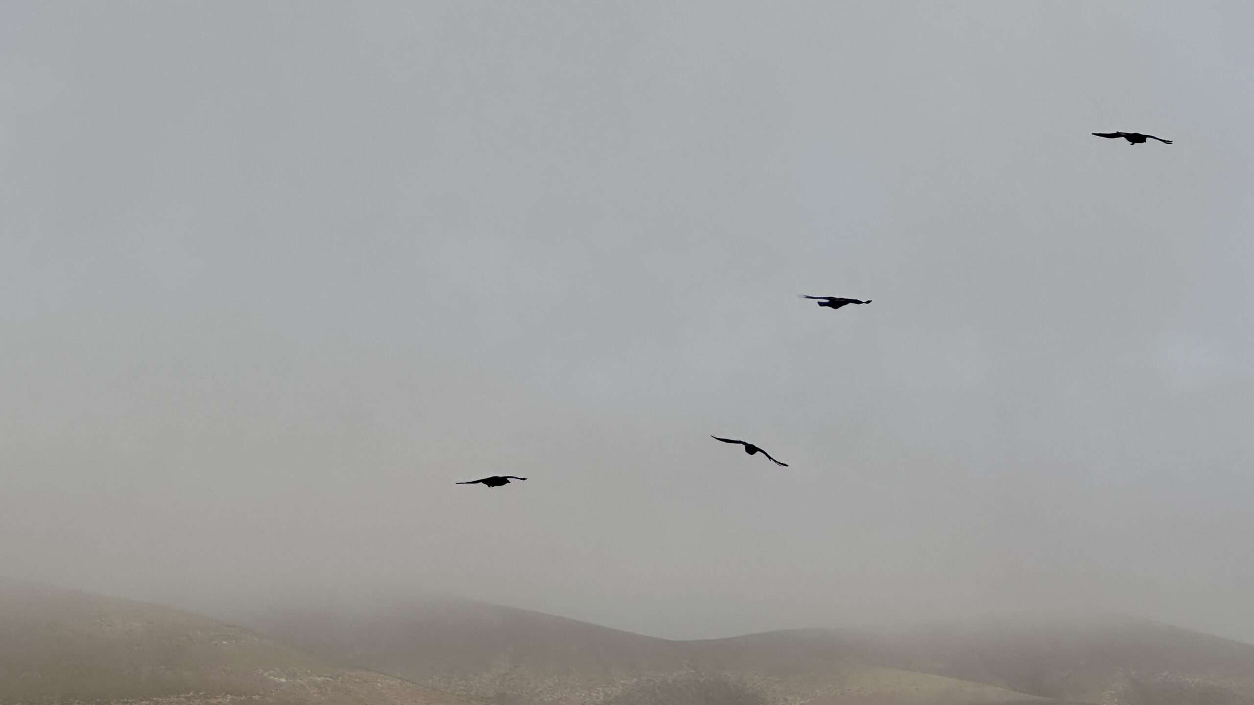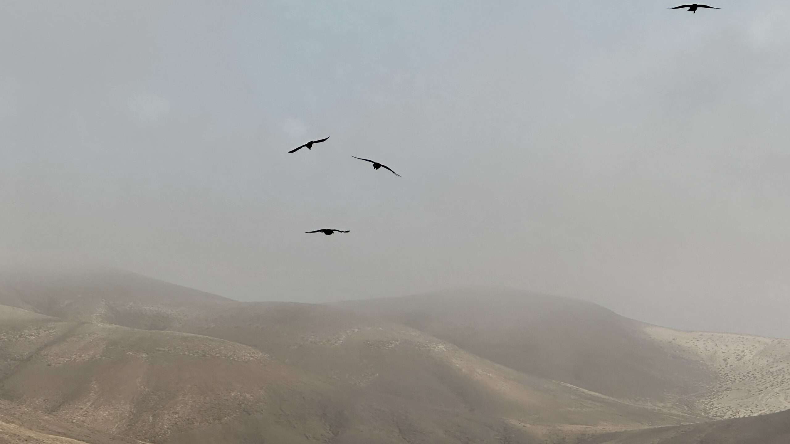Der Anstieg führte uns schließlich zur Divisoria del Cuchillete. Hier hielten wir unwillkürlich den Atem an: Vor uns saßen gut 100 Raben, schwarz wie flüssige Schatten, und empfingen uns mit einem ohrenbetäubenden Konzert aus Flügelschlagen und heiserem Krächzen. Das Schauspiel war so bizarr wie faszinierend. Die Vögel räumten uns nur eine schmale Passage frei, hüpften links und rechts, als wollten sie uns mustern. Wir gingen hindurch – und fühlten uns unweigerlich an eine Filmszene von Hitchcock erinnert.